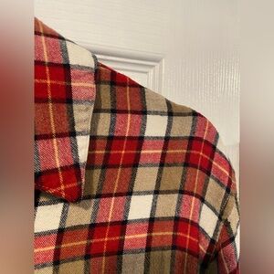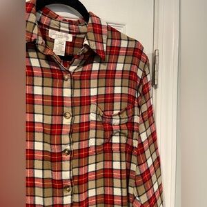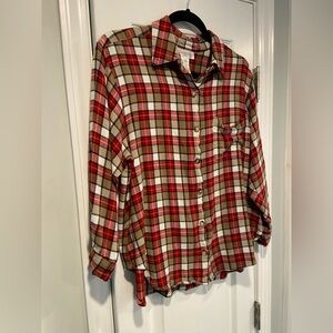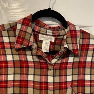 Jones New York Size 1X Red Tan Plaid Long Sleeve Button Down Soft Flannel Shirt