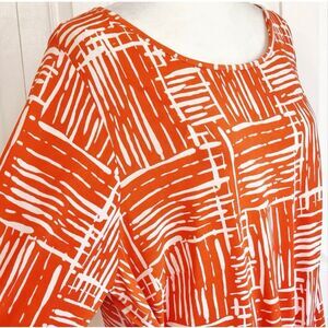 Jones New York Size 8 Tie Waist Midi Dress Orange Cross Hatch Print Fall Modest