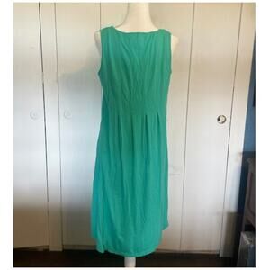 Great summer dress! Sleeveless women's knit dress with a scoop neck. Cotton blend fabric in green (57% cotton / 43% viscose).