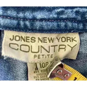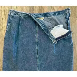 Jones New York Skirt Women’s Sz 10P Country Denim Jean Maxi Back Slit Vtg