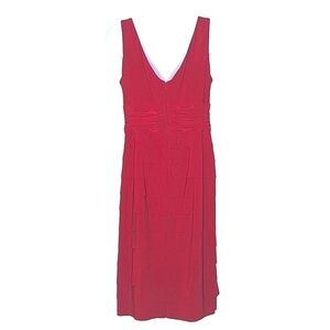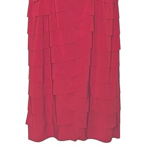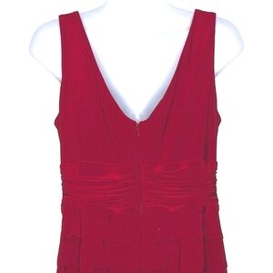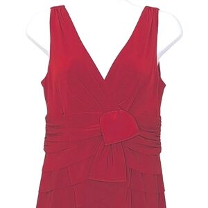 Jones New York Sleeveless V-Neck Bodycon Ruffle Tiered Midi Dress w Bow Rich Red.