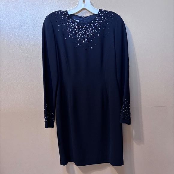 Jones New York Special Occasion Beaded Sequin Black Long Sleeve Dress Size 4P
