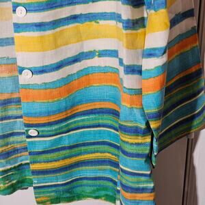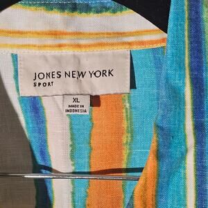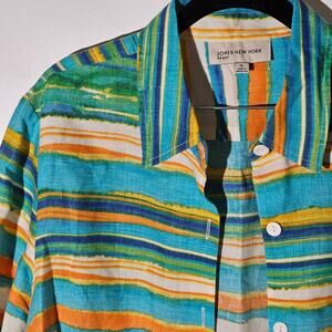 Jones New York Sport 100% Linen Button Shirt Jacket 3/4 Sleeve Sz XL Watercolor