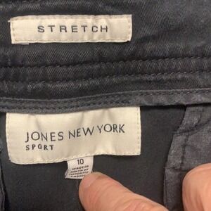 Jones New York Sport Stretch Black Bermuda Shorts. Size 10.Worn but still in good shape. Metal zipper and 2 buttons closure. 2 front pockets and 2 back.
