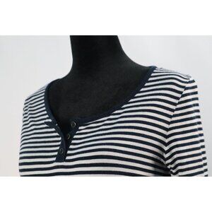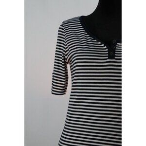 Jones New York Sport Black & White Striped Button Henley Shirt Small