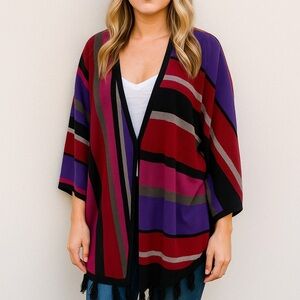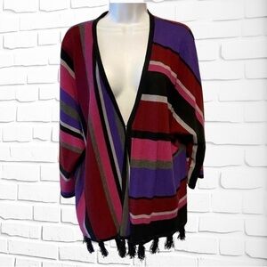 Jones New York Sport Bright Stripe Pink/ Purple, Fringe Bottom Cardigan, size XL