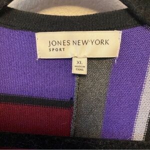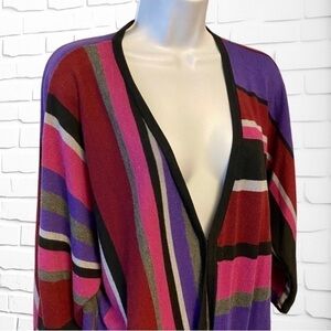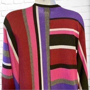 Jones New York Sport Bright Stripe Pink/ Purple/Black/Grey Open Cardigan with Black