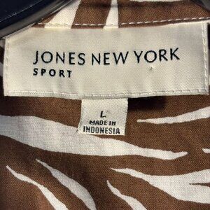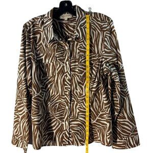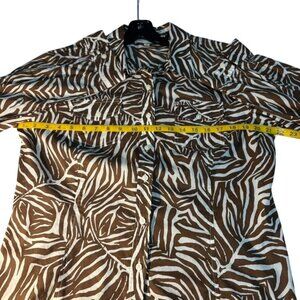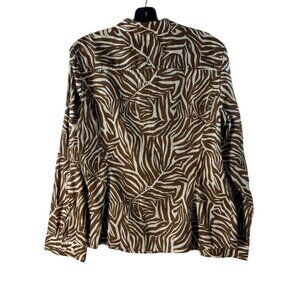 Jones New York Sport Brown & White Zebra Print Button-Up Long Sleeve Shirt
