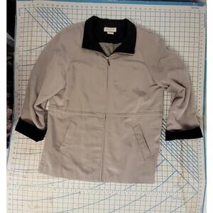 Jones New York Sport Contrasting Cuffs Zip Front Draw String Waist Barn Jacket