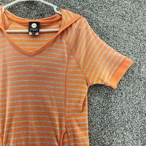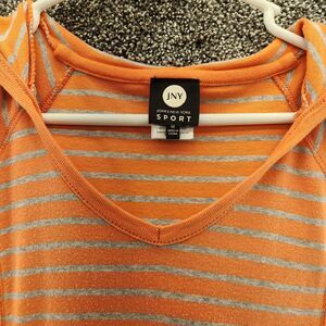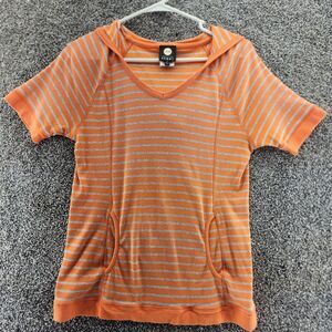 Jones New York Sport Medium orange striped hooded short sleeve t-shirt
