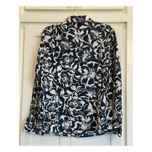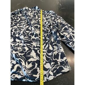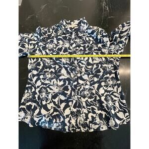 Jones New York Sport Navy/White Floral button up blouse XL 100% Cotton