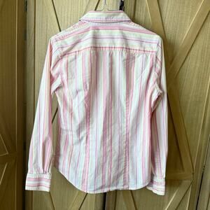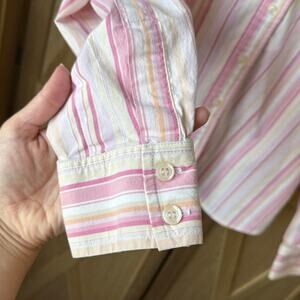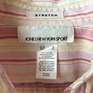 Jones New York Sport Stretch Long Sleeve Vneck Button Up Pink Striped Shirt SM