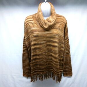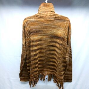 Jones New York Sport Striped Earth Toned Turtleneck with Tassel Hemline Medium.