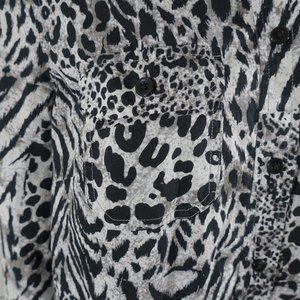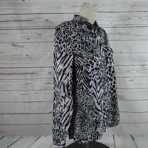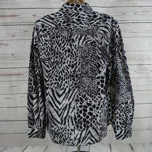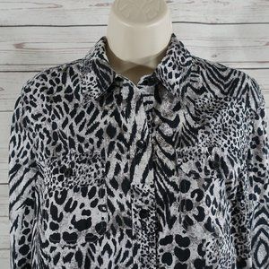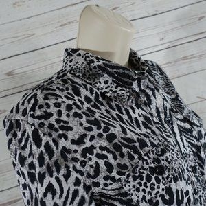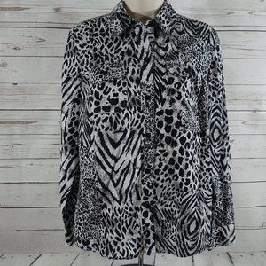 Women’s Jones New York Sport White, Black and Shades of Gray Tiger Stripe Tiger Print Button Front Long Sleeve Blouse. Blouse Top in excellent condition.