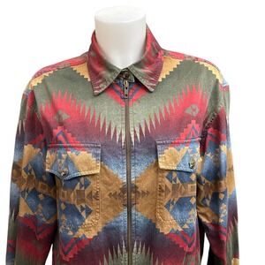 Jones New York Sport Western Aztec 100% Cotton Full Zip Jean Jacket Vintage sz M