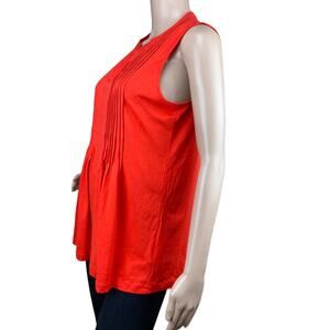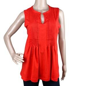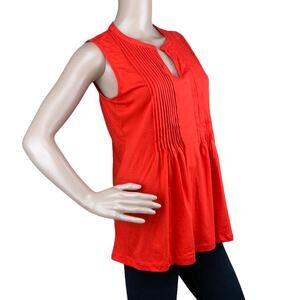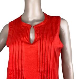 Jones New York Sport Women Red Orange Sleeveless Pleated Split Neck Blouse S