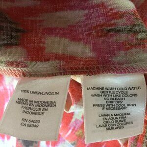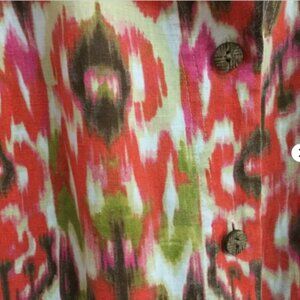 Jones New York Sport Women Size 2X Blouse Top Button Orange Green Brown Linen