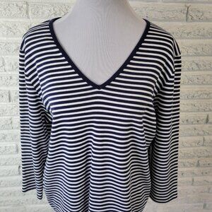 Jones New York Sport Women Top 1X Plus 3/4 Sleeve Blue White Stripe STR37E