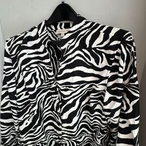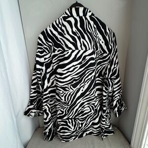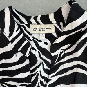 Jones New York Sport Women’s 1X Zebra Print 100% Linen Tunic Blouse 3/4 Sleeve