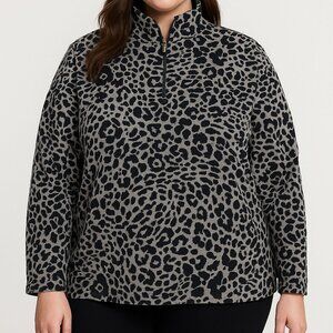 Jones New York Sport Womenβs 2X Leopard Print Half-Zip Fleece Pullover