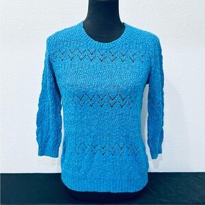 Stay cozy and stylish with this beautiful blue long sleeve, pullover women's sweater. Perfect for any occasion.