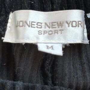 Jones New York Sport black wide wail high rise soft velour pants, size M. Good preowned condition; no fabric/care label. Wash inside out in cold water for best results.