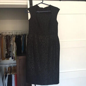 Euc. Cap Sleeve Sheath Dress. Fully lined. Bust 18”. Waist 16”. Hips 19.5”. Length 39.5”.