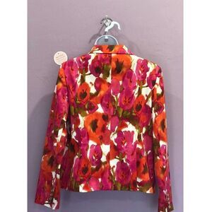 Jones New York Stretch Blazer Azalea Pink Floral Jacket Sz 10