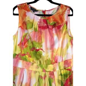 Jones New York Stretch Cotton Dress Floral Colorful Sheath Short Sleeveless 14