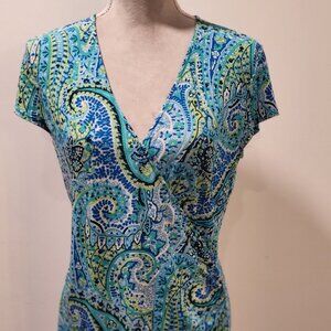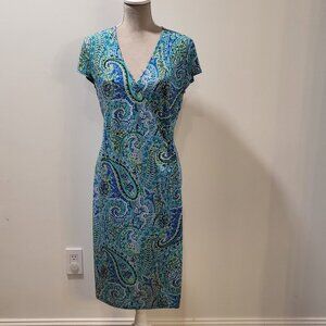 Jones New York, Stretch Paisley Blue/green Size Small (Spain Jones Group) Dress