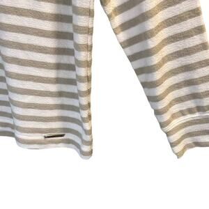 Jones New York Stripe Knit Sweatshirt Criss Cross V-Back Size M Khaki White