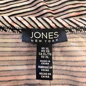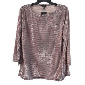 Jones New York Striped Velvet Top Long Sleeve Blouse XL Pink / Black Scoop Neck