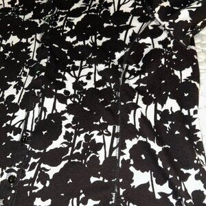 DESCRIPTION Striking black and white floral pattern in a light weight button-down cotton cardigan that could serve year round while being light enough for summer wear. Versatile and perfect for garden parties, vacation, officewear or casual walks on the beach. Princess seams add subtle shaping to a somewhat boxy style. 100% cotton, machine washable.