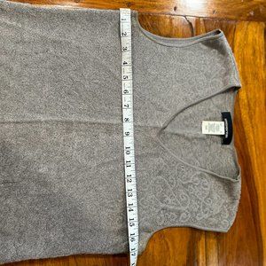 Beautiful grey-khaki sweater long cardigan and matching vest. Very thin material, drapes nicely. Bought at Saks 5th Ave.