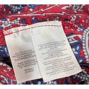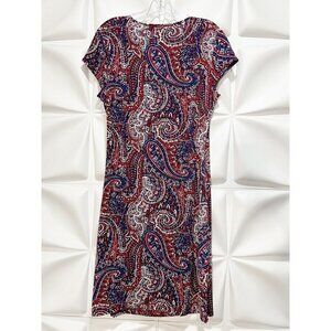 Jones New York Sz M Red Blue Paisley Print Faux Wrap Dress Slinky Stretch
