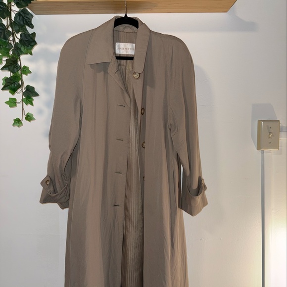 Jones New York Taupe Long Trench Coat | Minimalist Button Front | Classic Fit