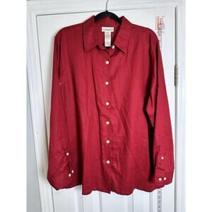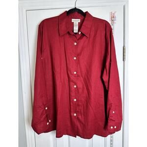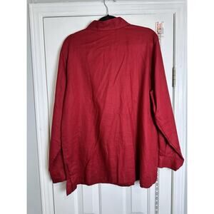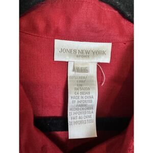 Jones New York Top Womens Red Linen Button Up Long Sleeve Blouse Roll Tab XL