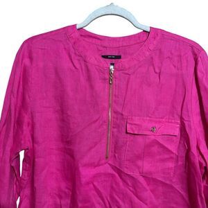 Jones New York Tunic Top Womens Large Pink Linen Zipper Detail Popover Blouse