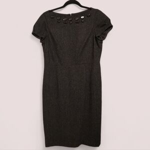 Jones New York Tweed Sheath Dress - Cap Sleeve, Size 10, Wool Blend, Gem details