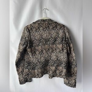 Discover the timeless elegance of the Jones New York Blazer, crafted in a sophisticated black and brown palette. This blazer features a classic silhouette, perfect for adding a touch of refinement to any ensemble. Made with attention to detail, it offers a versatile style that seamlessly transitions from professional settings to evening occasions.