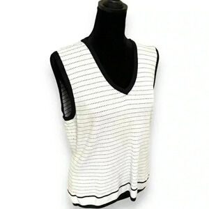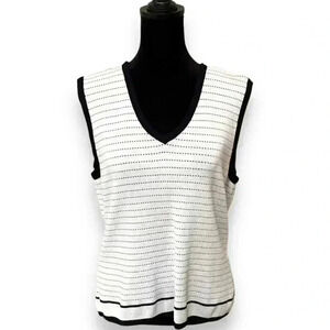 Jones New York V-Neck Lightweight Preppy Rib Knit Striped Sweater Vest Size Lg