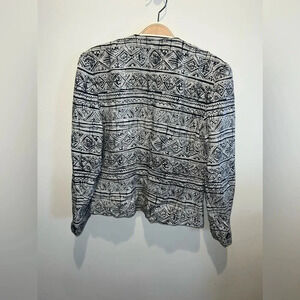 Jones New York Vintage 100% Silk Black and Tan Jacket Size 4P, Aztec, Classy