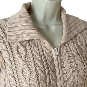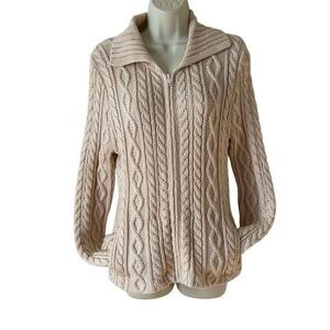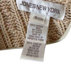Jones New York Vintage 100% Merino Wool Cream Knit Zipper Sweater Size Small