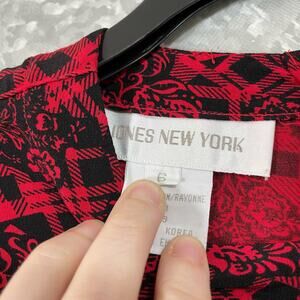 Jones New York Vintage 80's Red Buffalo Check Floral Top - Size 6 - Long Sleeves