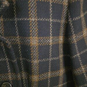 Elevate your style with this vintage double-breasted cropped jacket. Crafted from wool, it features a striking black and brown plaid design, perfect for any occasion. Made in the USA, this jacket is fully lined for comfort and warmth.