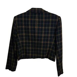 Jones New York Vintage Black Plaid Double Breasted Cropped Wool Jacket Size 10