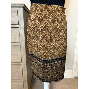 Jones New York | Vintage Brown/Black 100% Silk Wrap Pencil Skirt | 8