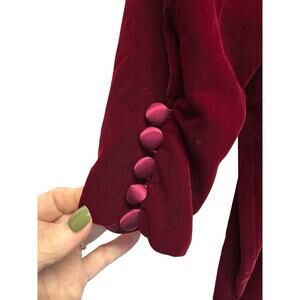 Gorgeous vintage-inspired burgundy velvet dress by Jones New York. Features a soft, luxurious feel with a beautiful sheen, flattering drape, and full-length sleeves with covered button accents. The back button closure adds a timeless, elegant touch. Made in Korea — a detail often found in well-made vintage pieces.