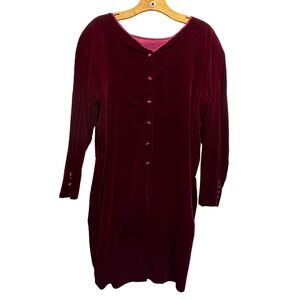 Jones New York Vintage Burgundy Velvet Dress Button Back Size 14