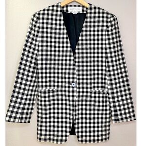 Jones New York Vintage Checkered Long Length One Button Blazer 100% Pure Wool